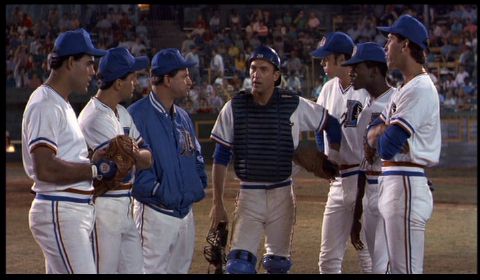 What would happen if the Bad News Bears were adults and played on a MLB team?? That’s Major-Leaguepretty much the idea of this movie. The Cleveland Indians haven’t won a World Series since Harry Truman was President, and at the time Major League was in theaters in 1989 hadn’t even won a league pennant since the 1950’s. They are perfect fodder for a loveable loser story. The setup here is that the owner has died and his bimbo widow has inherited the club. She devises a scheme to sabotage attendance so the team can be relocated to sunny Miami. The devious plot involves putting together a hilariously ragtag motley crew, including a pitcher who just got out of prison and is as likely to reach the bleachers as the strike zone with his fastball, an outfielder who practices voodoo, a speedy center fielder that couldn’t hit water with a baseball bat if he was sitting in a boat, & a bunch of old, washed up veterans with personality conflicts. Of course we know how it ends, but the journey is engaging and the characters are unique & funny, so the sports movie clichés aren’t at all bothersome. It is interesting to note that the film climaxes (spoiler alert) with the Indians winning a one game tiebreaker to capture the division and get into the playoffs. We learn in 1994’s Major League II that they lost the ALCS. In that inferior sequel Cleveland wins the ALCS but we still never see them in the World Series.